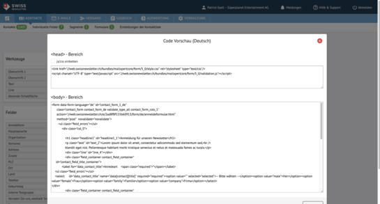 Code-Generator für Einbindung auf Website