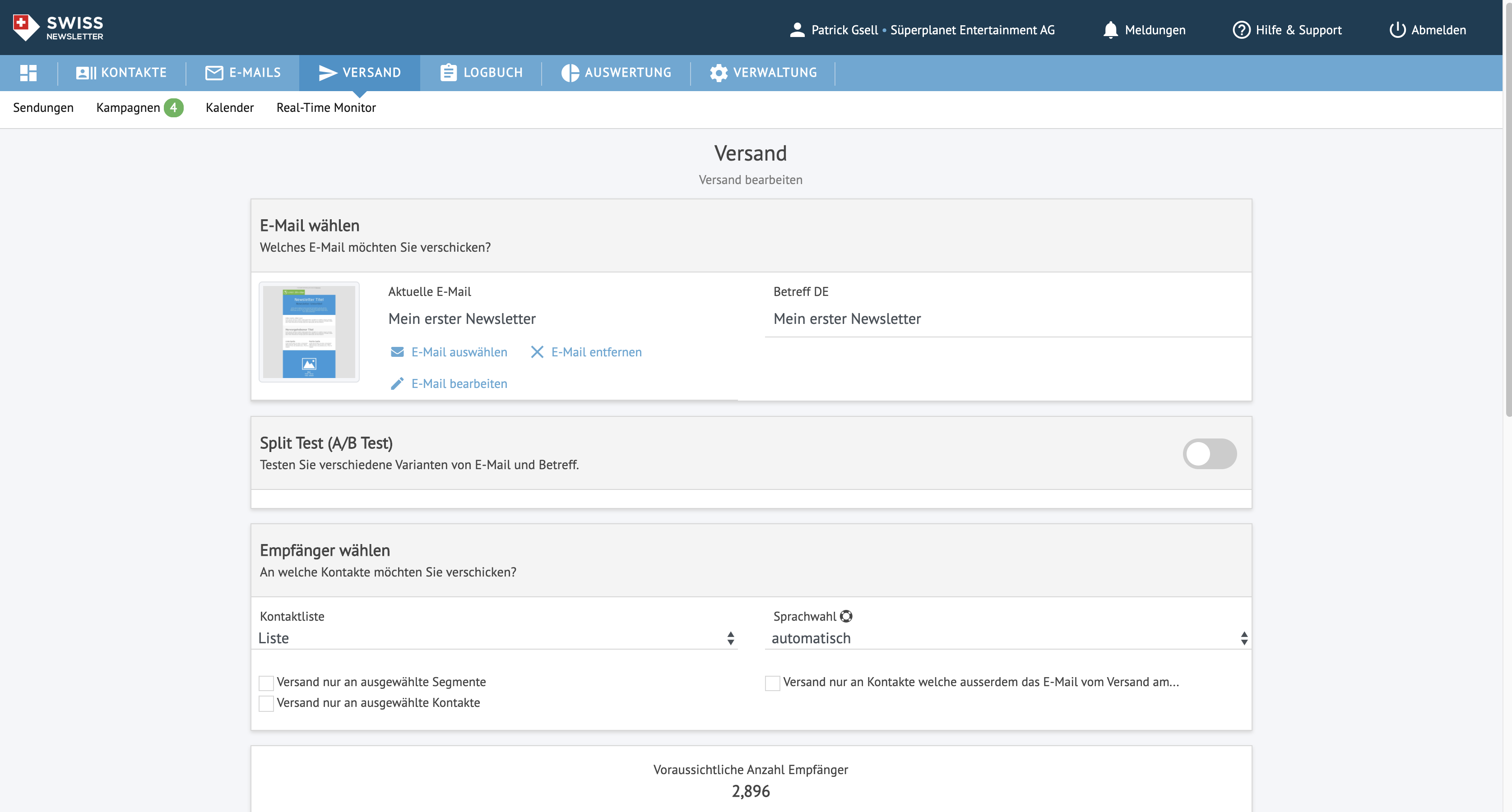 Mehrere Sprachvarianten können gleichzeitig versendet werden
